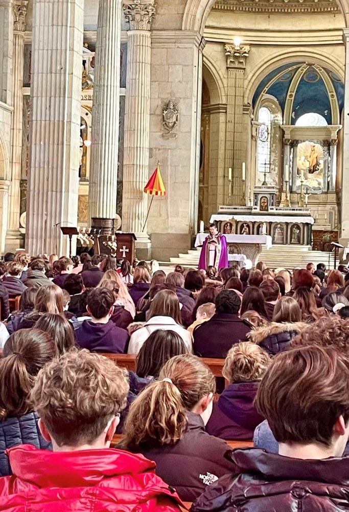 Des jeunes lycéens et étudiants ont répondu favorablement et très volontairement à une invitation de notre campus pour se retrouver à la basilique Notre Dame de Boulogne sous un beau soleil. Nos jeunes se sont joints à d’autres jeunes des collèges et lycées de l’enseignement catholique du Boulonnais, nous avons eu la joie de rentrer en carême tous ensemble en recevant l’imposition des cendres : « par ces cendres souviens-toi que tu es poussière et que tu retourneras à la poussière” (Genèse 3, 19) nous a dit le Père Jérémy... Bon carême à chacun et bon chemin vers Pâques.